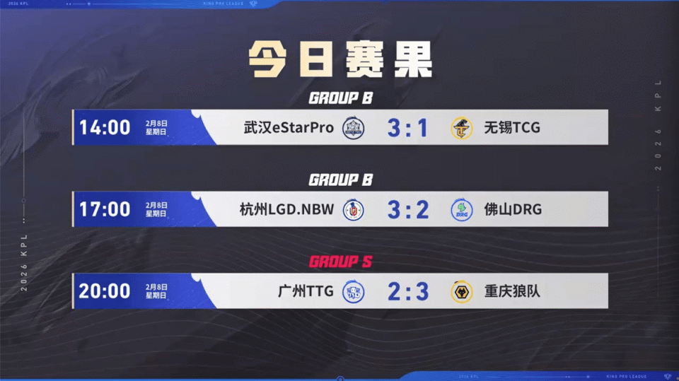 虎扑02月09日讯 [赛果]狼队/JDG/LGD分列三组榜首,大帅/坦然并列MVP榜头名