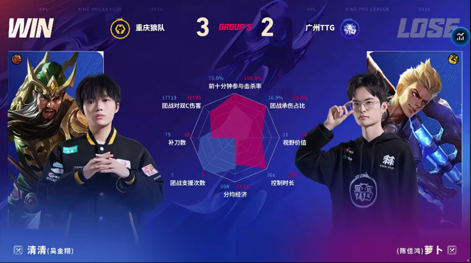 [赛果]狼队/JDG/LGD分列三组榜首,大帅/坦然并列MVP榜头名