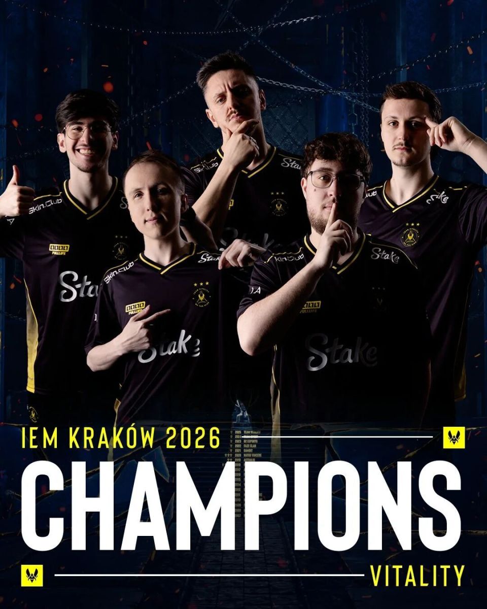 在2025年5月,Vitality以IEM达拉斯的冠军成为了第六届ESL大满贯的首位竞争者。随后,Spirit凭借IEM科隆的冠军也加入了第六届ESL大满贯的角逐;年底FURIA在夺得IEM成都的冠军后,成为了第六届ESL大满贯的第三位争夺者。而如今,Vitality在捧起了IEM克拉科夫的冠军奖杯过后,距离完成本届大满贯就只剩下了一项IEM/EPL赛事的冠军。