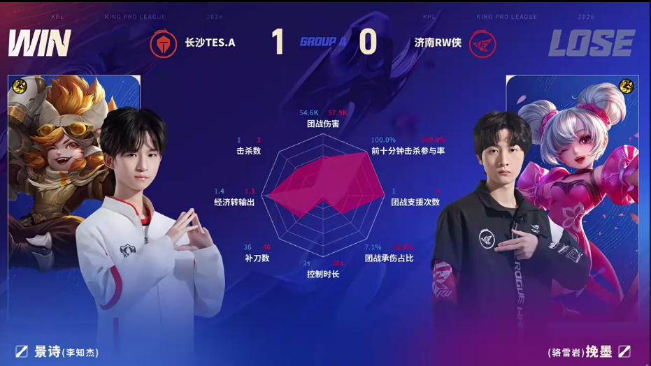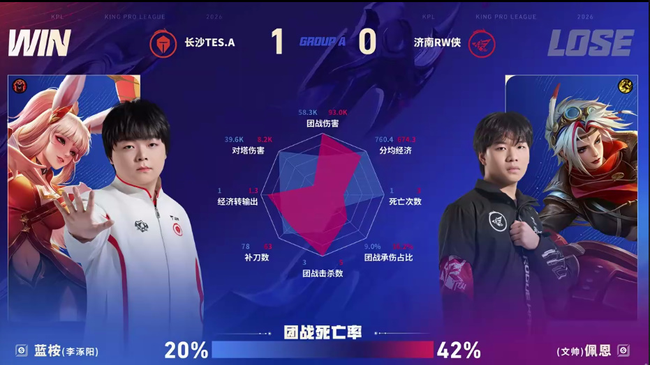 虎扑02月10日讯 TES/RW第一局数据图:书源哪吒全包围今屿暃