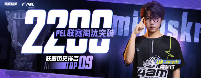 恭喜4AM.mingskr联赛个人总淘汰数突破2200,排名第9名