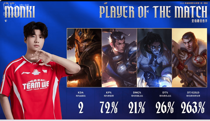 我剑也未尝不利!Monki斩获WE对阵LNG比赛的全场MVP