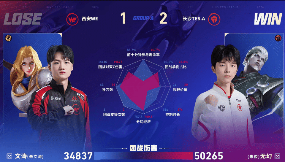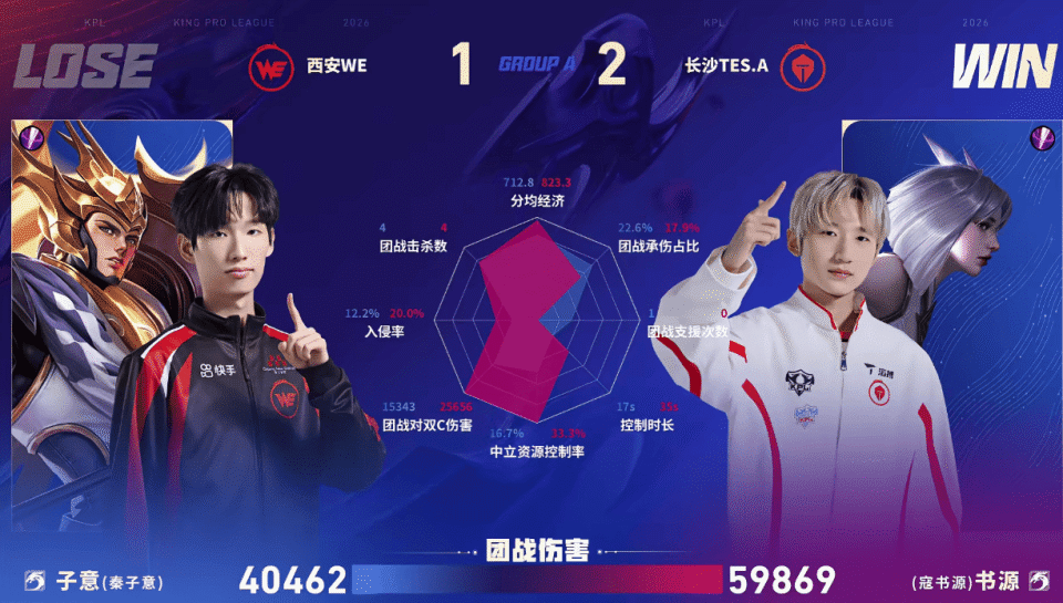 虎扑02月12日讯 TES.A/WE第三局数据对比:书源镜多数据领先子意杨戬