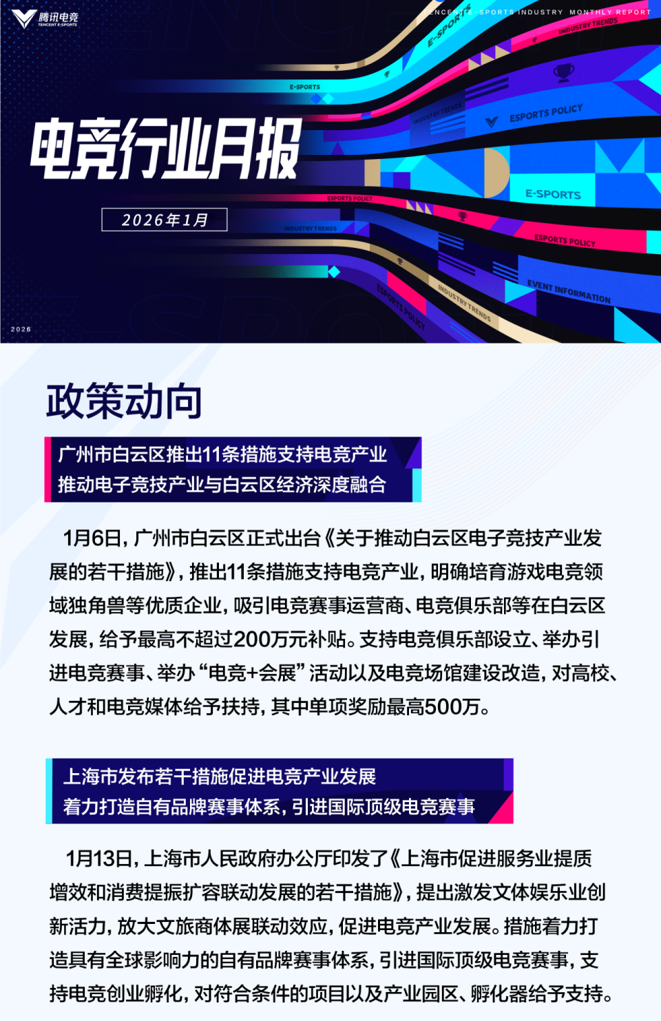 电竞行业月报 | 2026年1月份电竞产业资讯一览,快来看看有哪些内容吧