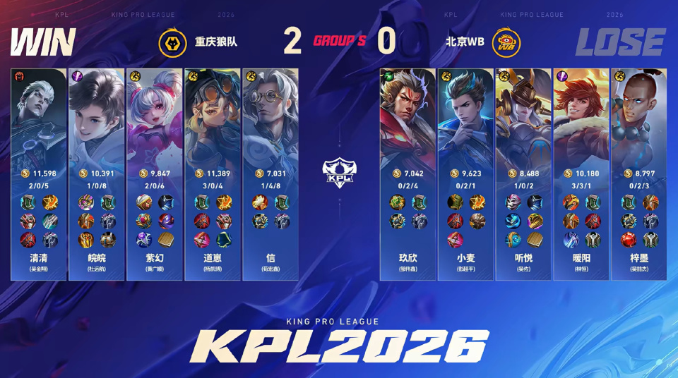 狼队目前的五人组还一个大场都没输过,磨合得效果确实好。战胜挑杯冠军WB也很有含金量,虽然不能说狼队夺了,但这个赛季也可以看做冠军的有力争夺者了。