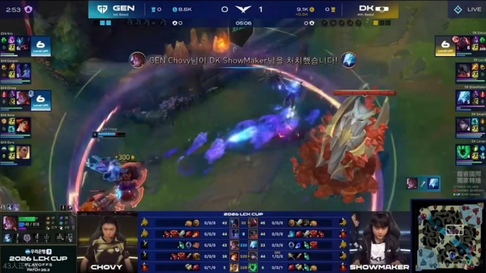 35分钟0击杀0助攻,单场落后7K多的经济,许哥这场BO5,是真被Chovy爆惨了,DK优势的局,中路隐身送大节奏,DK劣势的局,中路先被突破,但凡许哥正常一点,DK都是有机会,跟GEN打满五局的,这场BO5看完,只能说联赛超的实力,是真的很恐怖,当然,许哥也是真的很区。