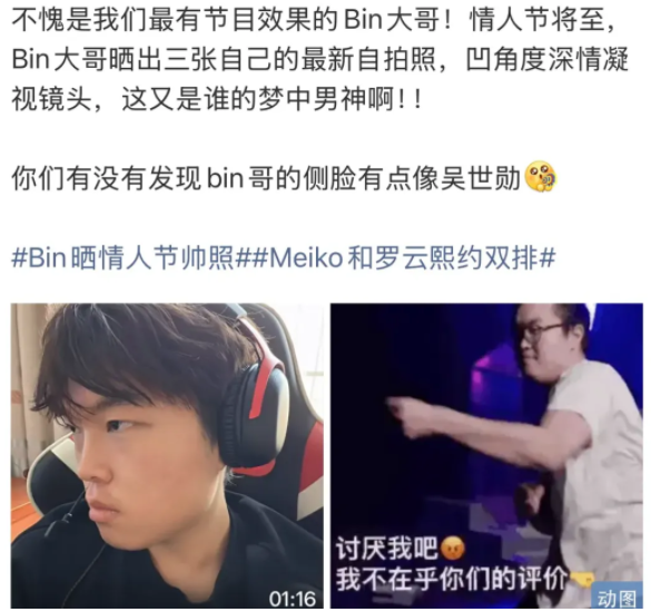 客观来看,两人气质与五官并不相同,但“恍惚之间像一下”的玩笑,恰恰说明粉丝对他的关注点已从操作延伸到外形,这类讨论之所以能发酵,一方面是Bin本身话题属性强,直率、敢说、带点少年气。