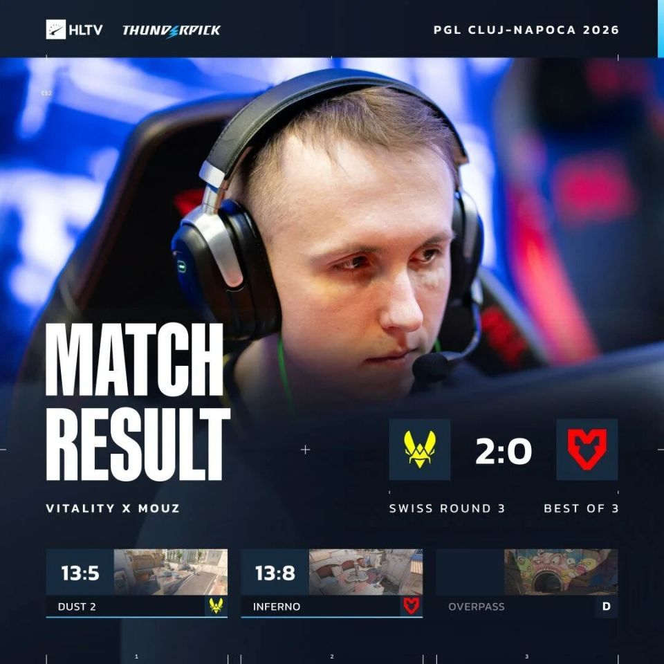 2-0组:Vitality 2-0 MOUZ,3胜0负晋级淘汰赛