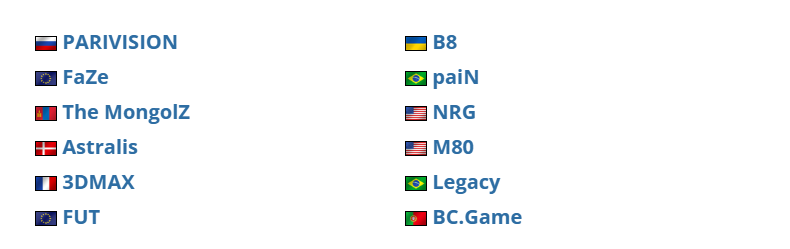 根据2月2日的排名,FaZe、PVISION和The MongolZ是仅有的三支接受该赛事邀请的Top 10战队,其余排名靠前的队伍则优先考虑了紧随其后于4月13日至19日举行的IEM里约。B8和3DMAX是仅有的两支将同时参加这两项赛事的队伍。