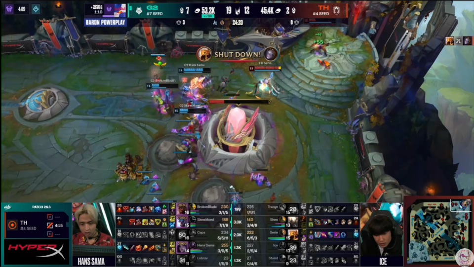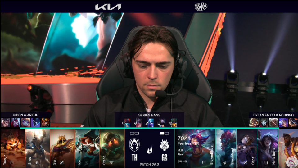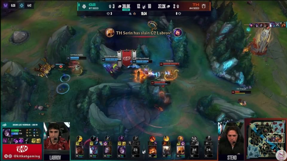 欧洲LEC季后赛,G2对战TH。几乎和往年的剧情一样,G2在小组赛Bo1的表现并不理想,与TH一样都是6-5,但最终G2是排名第七晋级,而TH则是第四。这种排名,显然根本不能作为季后赛Bo3和Bo5的真正团队实力参考。G2明显在如今的欧洲赛区,仍然具备很强的统治力。虽然年年在全球总决赛丢人,但在自家身为欧洲王的G2已经霸占王座很多年了。