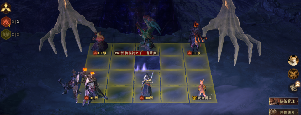 备战阶段,场上会存在一个特殊格子,处于格子中的队友会获得与伪混沌之子相同的增益和减益。战斗开始时,该格子中没有单位,则召唤1个混沌投影。