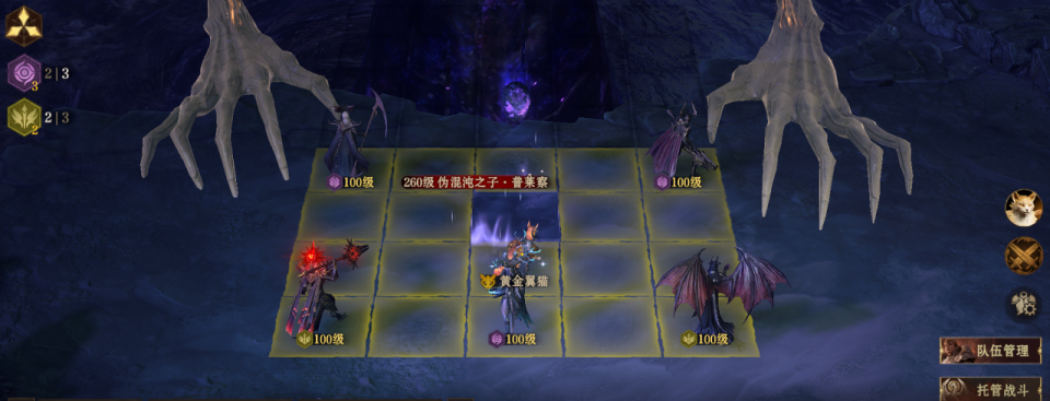 说明:魔宠推荐翼猫,该BOSS防御较高,蕾塔较难独自保障全队生存,因此推荐再搭配一名其他辅助,没有玛舒图尔可替换为格里什纳尔、法桑顿、泽菲等,没有塞茨狄丝也可替换为威丝克。