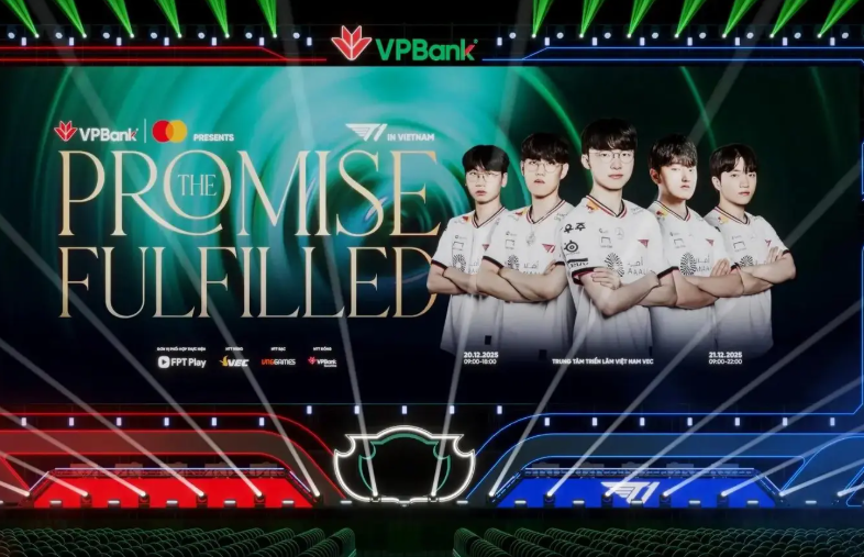 近十年来,这种持续增长一直吸引着韩国电竞组织的目光。早在2018年,韩华生命电竞就曾在越南举办过“Clash of Superstars”和“HLF Global Challenge”等活动。最近的一次是在2025年12月,T1在夺得队史第六个世界冠军后不久,便携手VPBank在越南举办了名为“The Promise Fulfilled”的活动。值得一提的是,该活动就在河内的越南展览中心举行——正是DRX即将举办“2026 HOMEFRONT”活动的同一场馆。