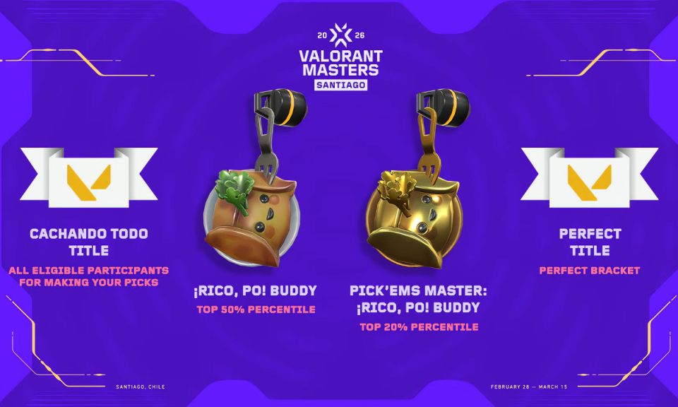 此外,随着2026年的第一个VCT大师赛临近,《无畏契约》赛前预测活动在圣地亚哥大师赛闪亮回归,VCT选手数据现已在电竞中心内显示。从2月19日起,玩家可以在客户端和网页上对瑞士轮阶段进行赛前预测。在瑞士轮阶段,需要预测哪支队伍能从8支队伍的瑞士轮小组中脱颖而出,参与就能获得“老江湖”称号。