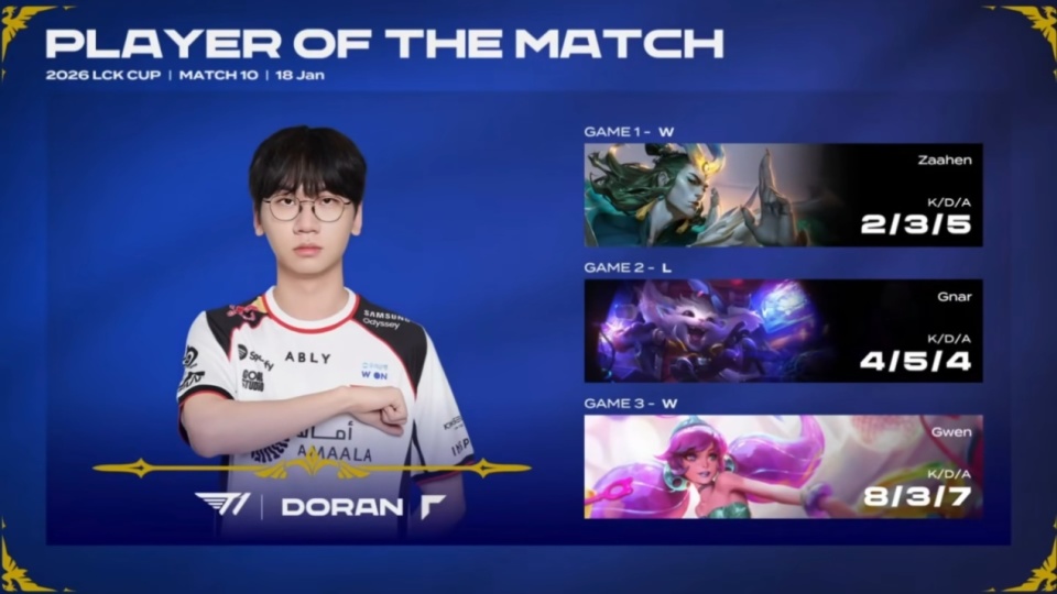 选手表现层面上来讲,Doran看起来是最尽力的,他肯定迫切地想要成为LCK第一上单然后入选国家队。