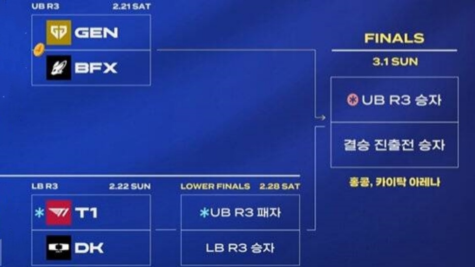 DNS被淘汰之后,LCK季后赛只剩四支队伍了,胜者组GEN和BFX,败者组DK和T1,这两场BO5,感觉悬念都不是很大,GEN作为内战幻神,联赛内几乎是无敌的,BFX虽然是黑马,但赢GEN的可能性还是很低,不出意外的话,BFX也会跌入败者组,跟DK和T1的胜者,争夺决赛名额。