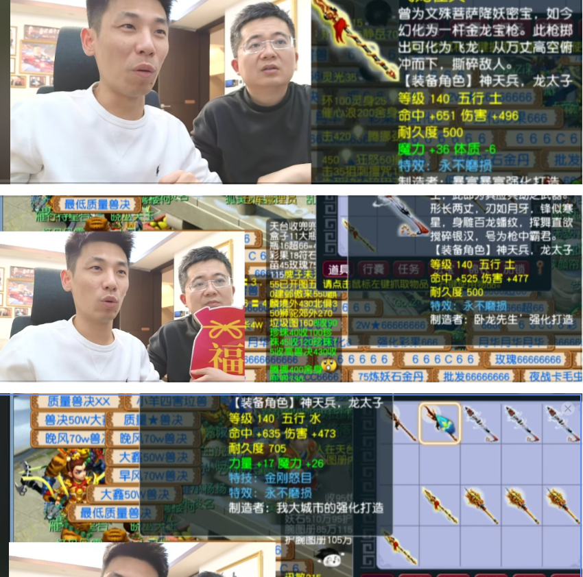 真正让直播间沸腾的,是路大叔的那包武器!谁能想到,一包武器里竟然出了三把140级的永不磨损枪!第一把,496伤害加36魔力,属性相当能打;第二把,473伤害,力魔双加43,还带金刚怒目特技;第三把,525命中、477伤害,纯暴力输出。这运气,简直逆天!
