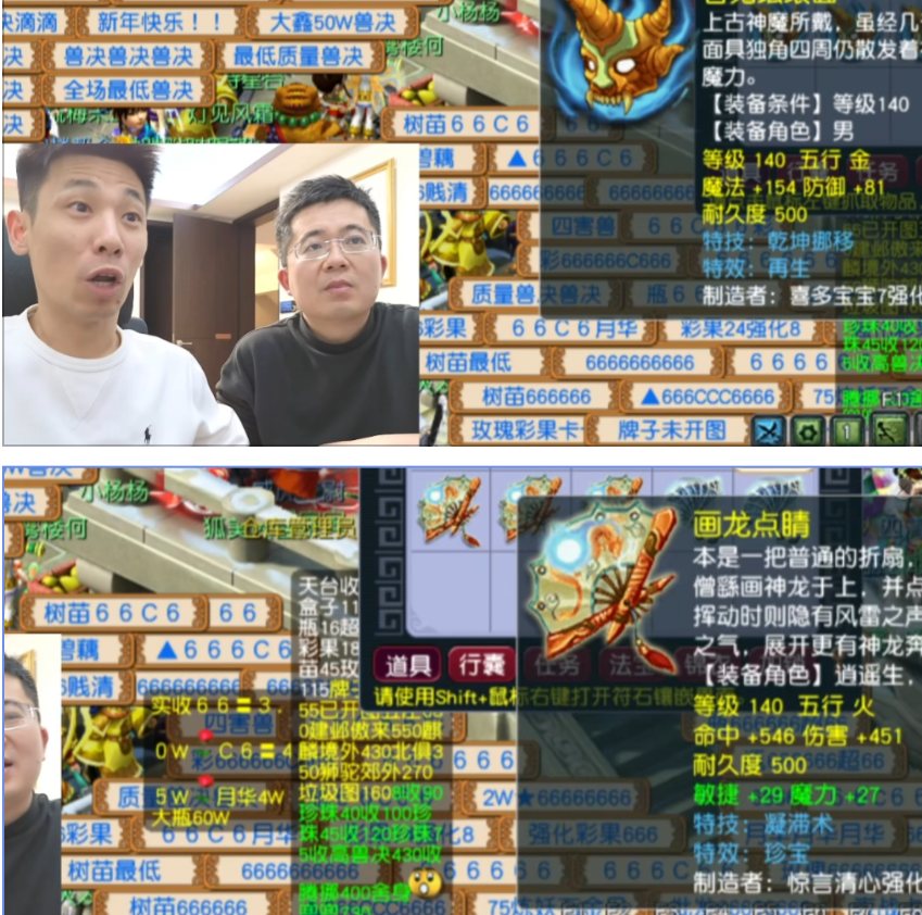 宝哥趁热打铁,又给自己鉴了几包,结果又出了两件小极品:一件140级乾坤挪移+再生的男头,一把140级451伤害、敏魔双加56、带凝滞术的扇子。虽然不算天价,但也是能换点零花钱的好东西。