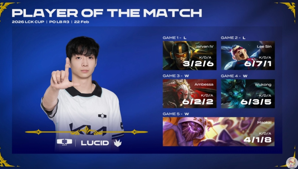 Lucid是这场Bo5的最佳选手POM