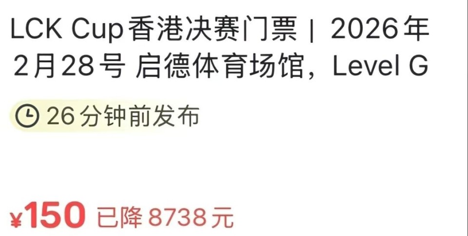 昨天,DK在LCK杯败者组半决赛中让二追三击败T1晋级败者组决赛。今年的LCK杯后两场将在香港举行,在T1无缘香港赛后,二手市场上该项赛事的票价出现了断崖式的下跌。