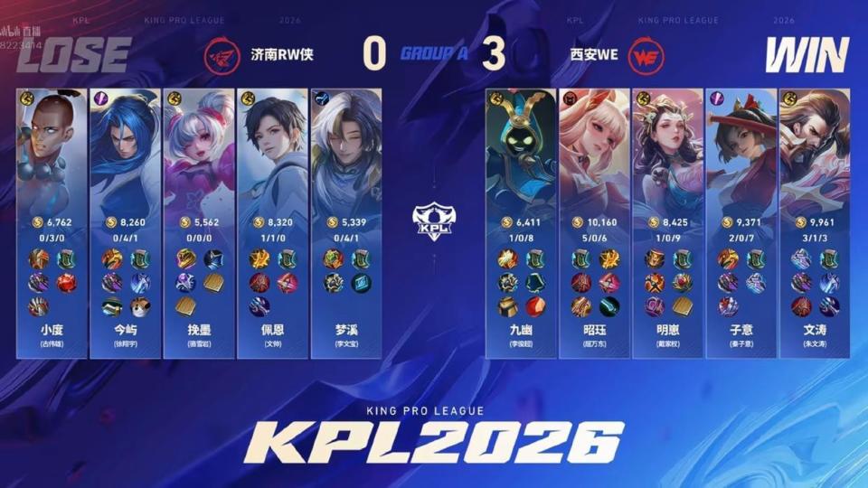 KPL年后首战:“西安WE再次零封济南RW,挑杯亚军菜到令人陌生”
