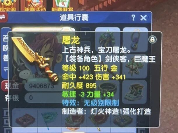 今日,【畅玩服-2003】一位老哥投稿分享自己的鉴定奇遇:趁着春节喜庆日子,他鉴定大量100级武器,竟一举斩获一把初总伤482、附加34力量的无级别大刀!属性极为出色,堪称区内第一X9神兵。