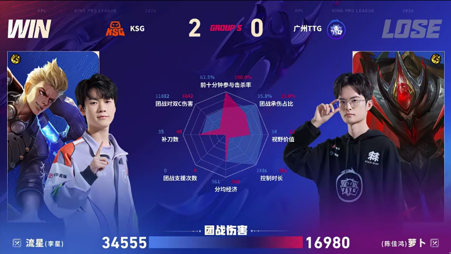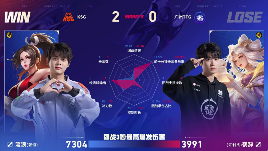 KSG/TTG第二局数据图:小屿蚩姹豪华数据多项拉满