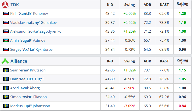 在整个征程中,火力输出由全队分担,选手们的平均rating在1.16至1.20之间。
