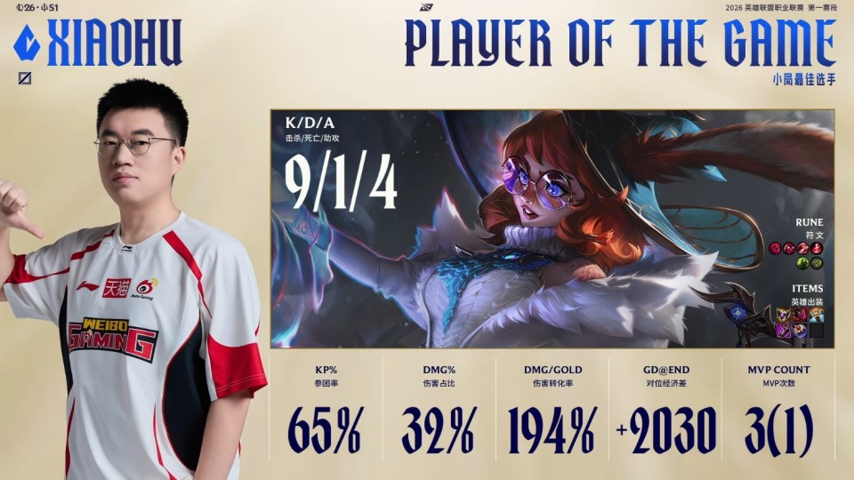 第二局MVP给到五杀的WBG中单Xiaohu。