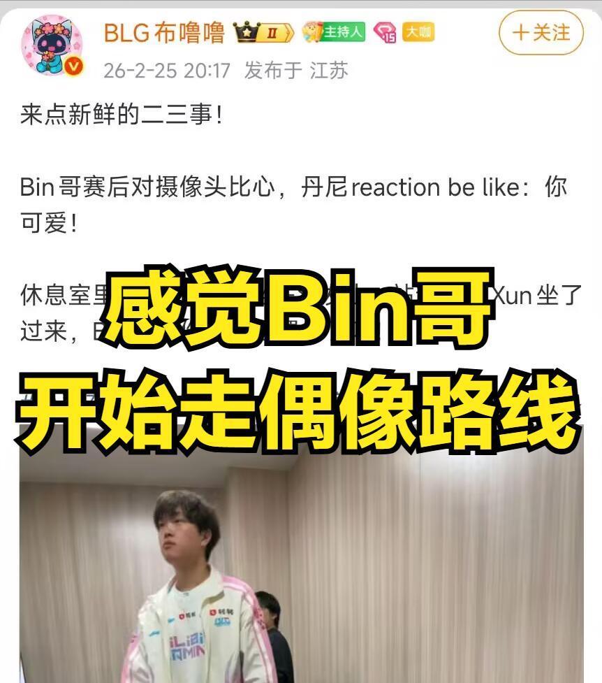 BLG比赛虐泉反被粉丝称赞!Bin赛后动作太可爱,引丹神公开表白