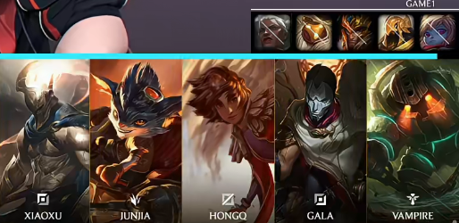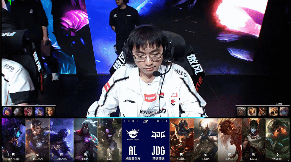 JDG选用:Xiaoxu兰博;JunJia潘森;HongQ岩雀;GALA烬;Vampire泰坦