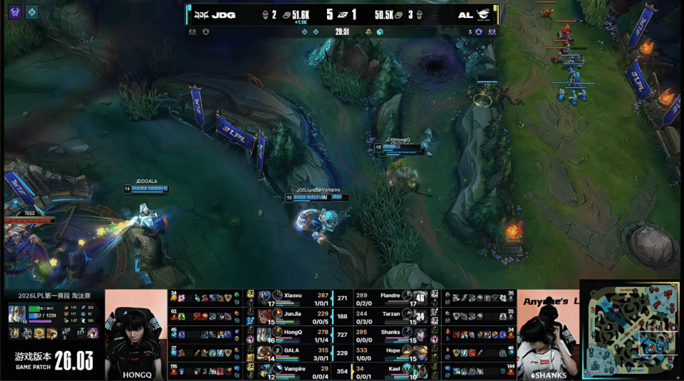 虎扑02月26日讯 GAME3:JDG蓝色方;AL红色方