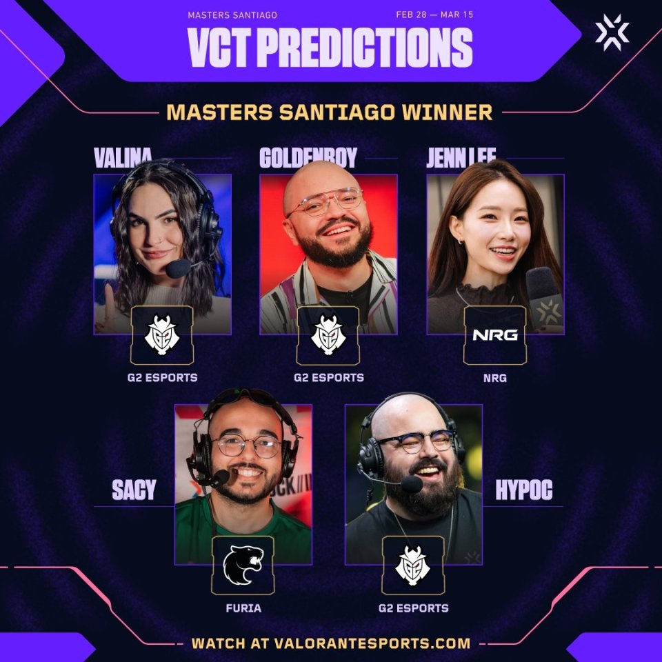 虎扑02月26日讯 海外解说对本次大师赛的冠军预测:3位解说认为G2将夺冠