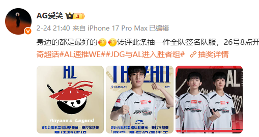 二、今日JDG战胜AL后,JDG老板于21:38评论爱笑: