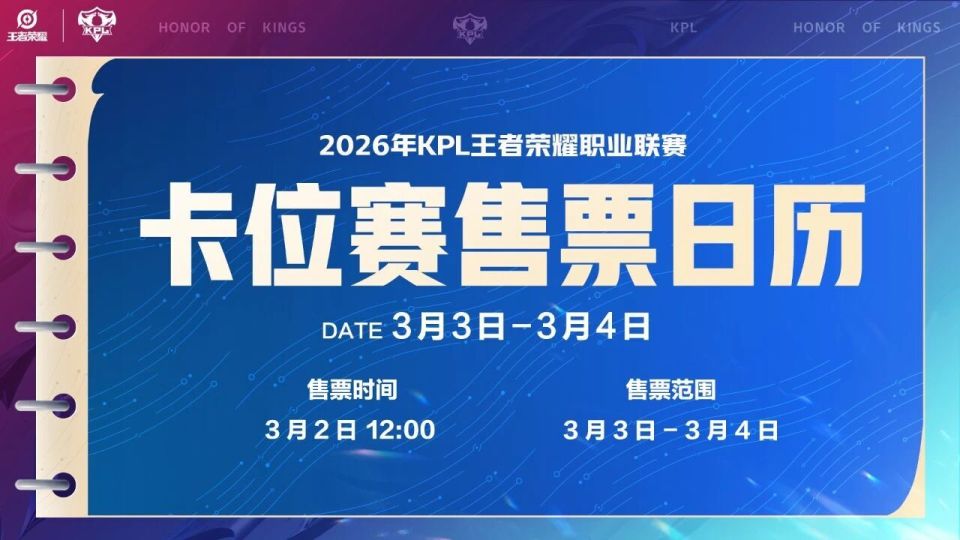 2026KPL春季赛常规赛第二轮卡位赛和常规赛第三轮线下售票日历出炉!
