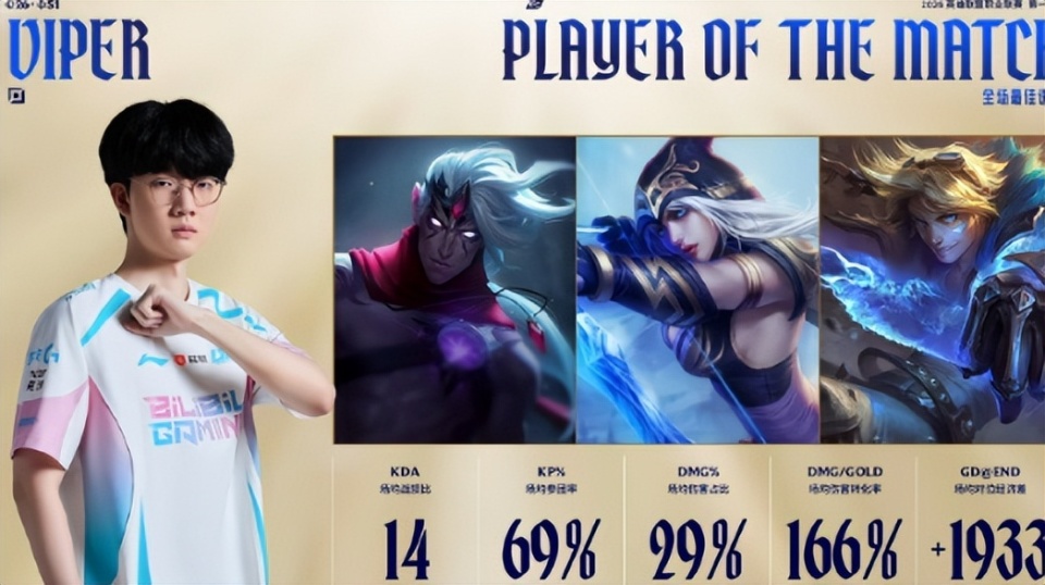 这场对决,Viper拿到了大场的MVP,发挥太出色了,寒冰甚至还有神箭的发挥,也只能说,小虎这波接箭,太巧合了,没办法,小虎只能当这个背景帝了。