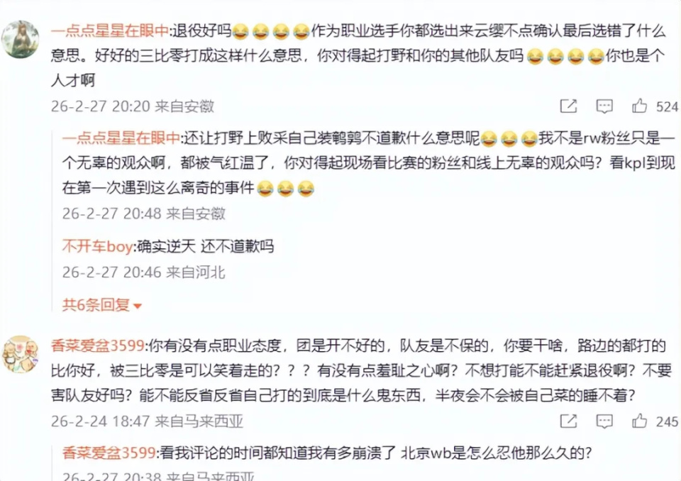 这不,网友们直接喷退役,稍微过分了一点,但是这个情况,俱乐部真的要稍微处理一下,选手的职业态度有问题啊。赛后今屿还被拉上来接受了采访,他可是发挥最好的人,真的是扛下了所有啊,明明自己很难受。
