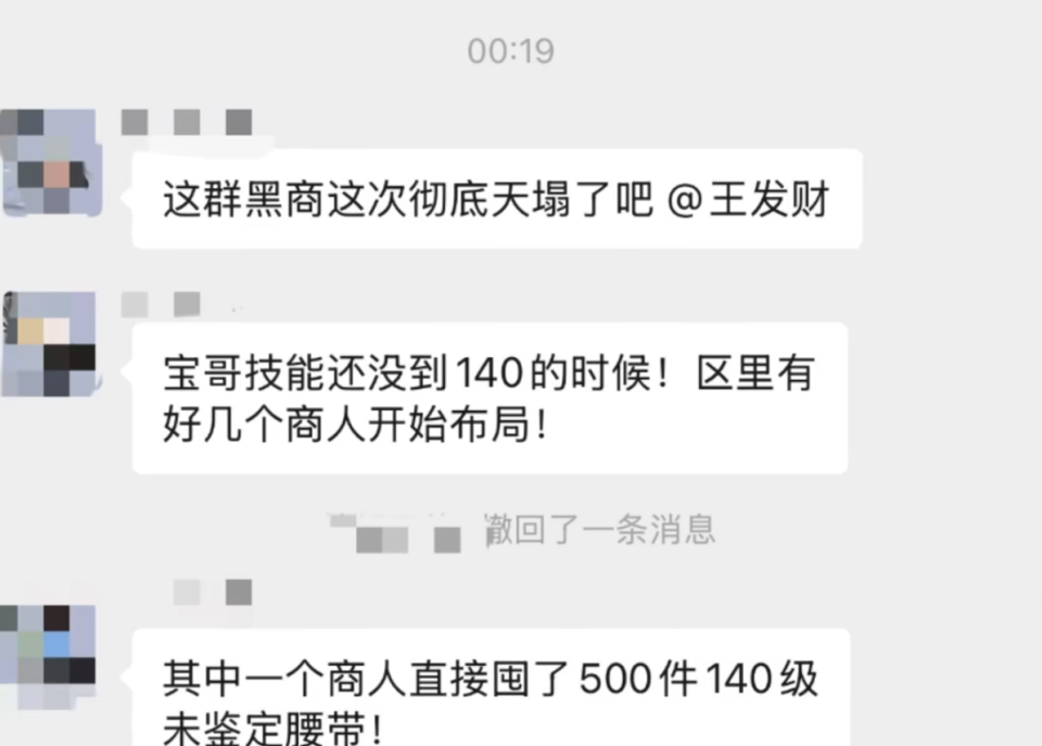 就在昨天,传音频道直接炸了锅。什么情况?原来是齐天大圣服务器上演了一出"商人大败局",众多囤货商人此刻已经哭晕在厕所。事情是这样的。最近有一群商人盯上了140级未鉴定腰带,他们的如意算盘打得那叫一个响——垄断货源,坐地起价,最后狠狠宰一笔宝哥。