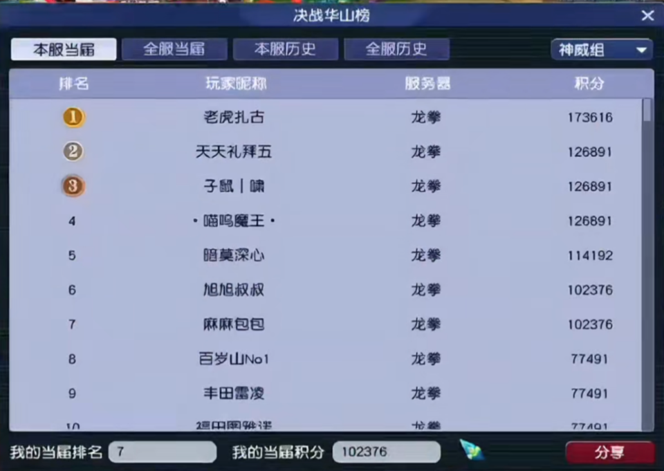 你敢信?龙拳华山积分榜突然杀出个程咬金!就在秦风和小王眼皮底下,某神秘玩家以17万分的恐怖战绩断层第一,把老牌选手甩得车尾灯都看不见!诡异的是这号之前查无此人,突然就天神下凡?现在粉丝们已经吵翻了,99%的玩家认定这是刷分狂魔——毕竟这离谱的积分涨幅,怎么看都有猫腻啊!