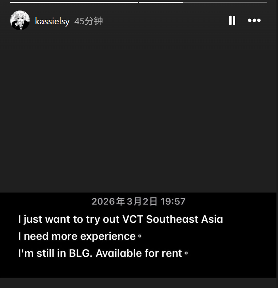 BLG青训kassielsy发文找东南亚次级队伍:我还在BLG,可租借