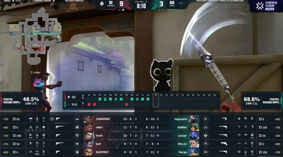 下半场G2在防守端打出五连胜,第18回合Lysoar清空A前点位,XLG完成一波存钱分的翻盘。