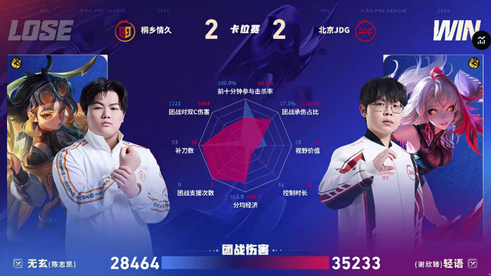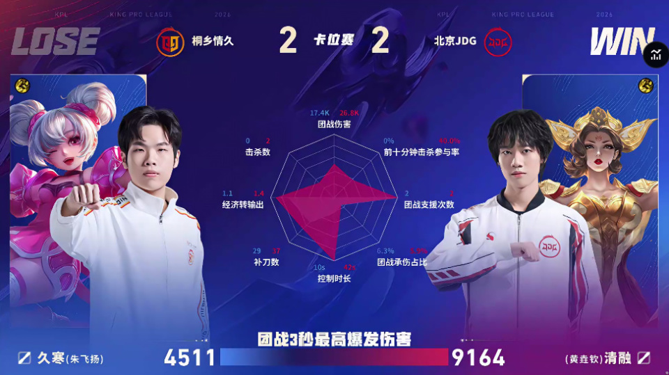 情久/JDG第七局数据对比:轻语夏洛特团战伤害高达十一万