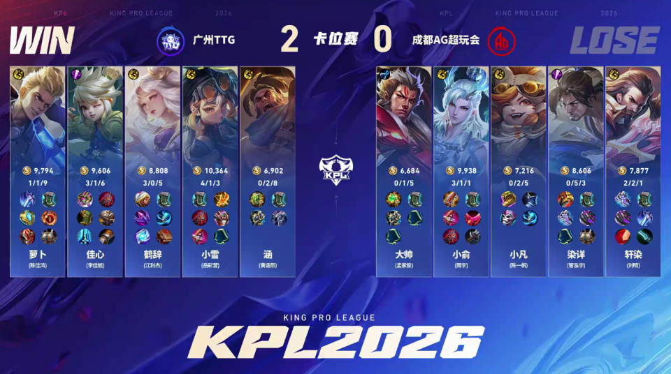 AG这个阵容一旦劣势宫本和曹操切进去,很有可能有去无回。想要切后排,但一看TTG这全是前排,正面的团战AG完全碰不过。0比2,AG超玩会这两局,一点还手之力都没有!就AG这实力,能在TTG手里拿下一个小局的胜利吗?