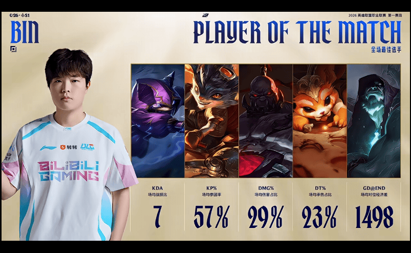 Bin整个系列赛发挥出色,斩获BLG对阵JDG系列赛POM