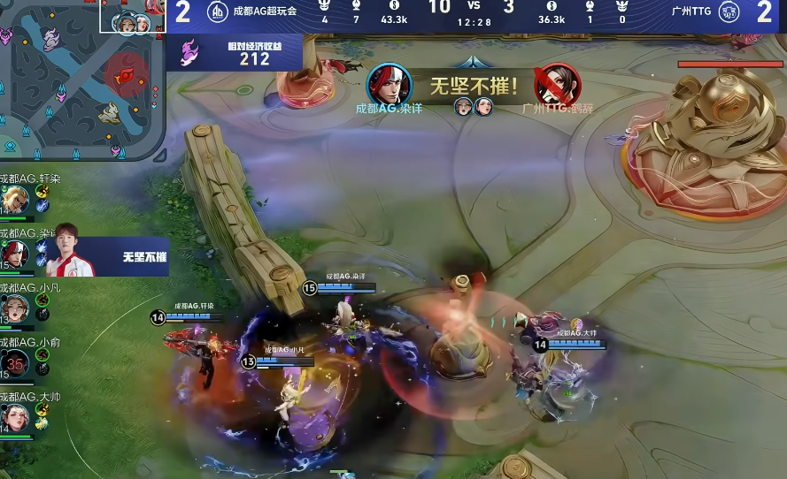 当然,也是队友阵容配合给力,大帅的杨玉环拿出来,就是保着野核的,效果不错,而且对面空空儿和镜,韩信都很好应对,又灵活又有输出,这手韩信让人心服口服,再次恭喜AG。