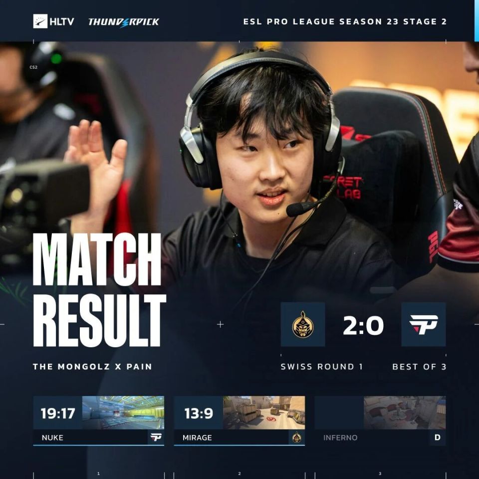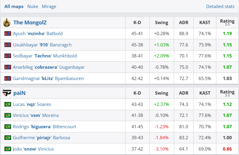 Nuke上双方不分胜负,历经两轮加时的鏖战后最终MGLZ以2分优势险胜。来到图二Mirage,nqz手枪局4杀带队取得开局领先,MGLZ上半场追至5分,换边蒙古队的强势防守让巴西人四处碰壁,一波8-2拿下胜利。