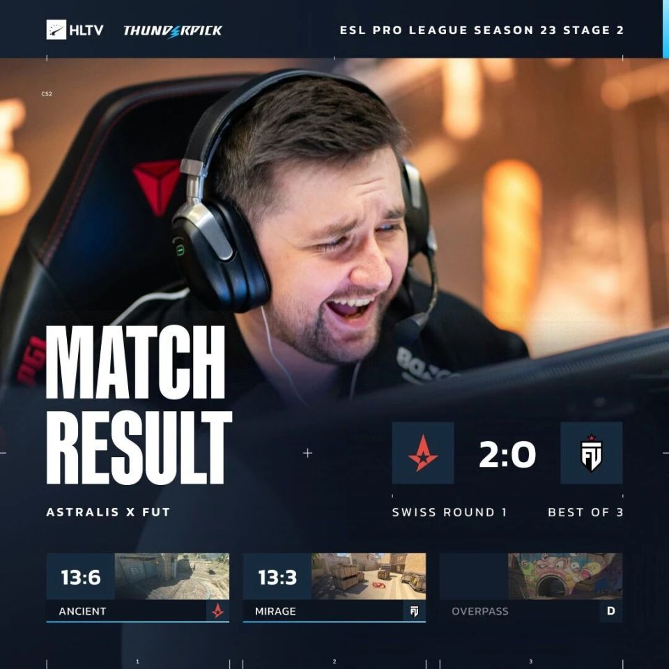 本场Astralis状态火热,在两张地图都是碾压局,图一Ancient上jabbi仅2HP完成1V3残局!图二Mirage上A队更是在防守方豪取11分,轻取对手完成复仇。