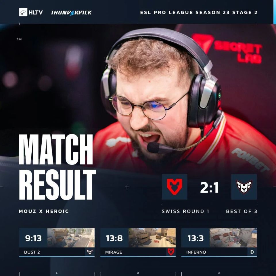 本场比赛双方做足准备均赢下各自选图战至1-1平,来到决胜图Inferno,MOUZ高歌猛进完全不给对手任何机会,直接轻松平推收下比赛胜利,晋级1-0组。