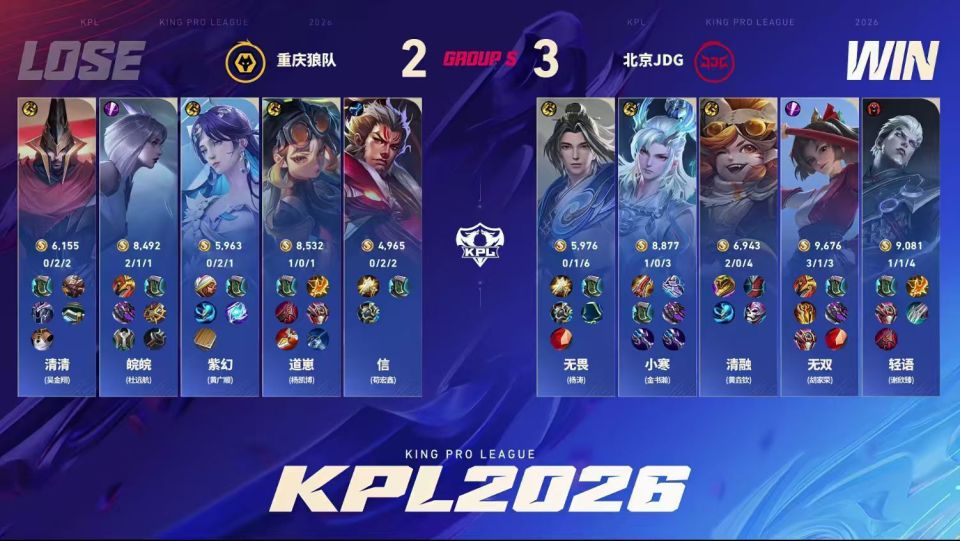 S组要变天了,谁敢信,本赛季第一个赢清皖版狼队的队伍是JDG。JDG在S组的第一战3-2战胜狼队,清融在和紫幻的对位中占尽优势,无畏继续维持着赵怀真主理人的身份。