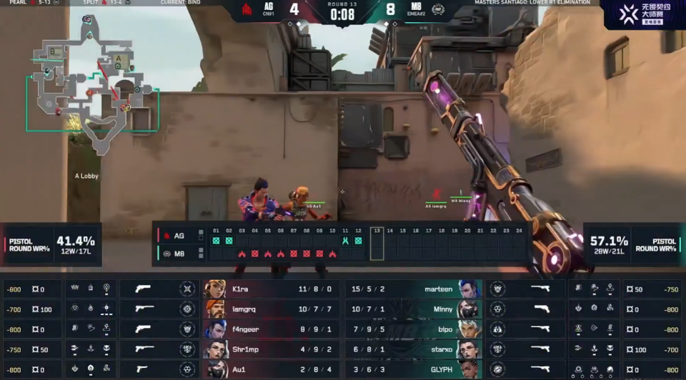 VCT大师赛:K1ra一炮三响炸翻全场,AG让一追二淘汰M8